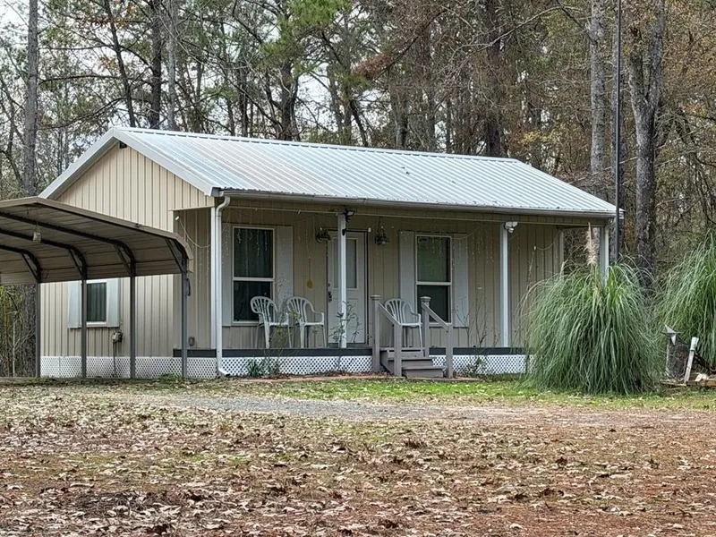 WELCOME HOME! 1/1, Well Built, 540 sf, Tiny Home, Cathedral Metal Ceiling in LR, Kitchen w/Refrigerator, Stove, Washer-Dryer in one, Nice Shower, Tankless Water Heater, Metal Exterior, Metal Roof, Front Porch, Dbl Portocover, 8 x 40 Conex with electricity, 4 inch Deep Well with filter, Built Well House, Gravel Driveway, All situated on 0.675 ac, good amount of trees, old home place with huge oak standing near the County Road. Located just off of Hwy 84, Joaquin ISD!