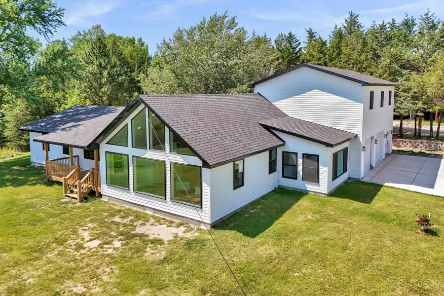 LAKEHOUSE LIFESTYLE at its BEST on Marion County Lake! Welcome to this fully renovated lakehouse retreat where every detail has been upgraded for modern comfort and peace of mind. Nestled on almost 2 serene acres at the lake with stunning water views, this home is your dream escape, whether it is for weekend getaways or full-time living. EVERYTHING is NEW: electrical, plumbing, siding, windows - SMART HVAC system & tankless water heater. The GENERAC whole-house generator adds the security of never being without power. The home features LVP flooring & quartz countertops throughout. All new kitchen appliances STAY with the home. Step into the gorgeous open living space with extra high vaulted ceilings in the family room/kitchen and large windows facing the lake (enjoy the view of the lake), flooding the home with natural light and unbeatable views. You will love the open layout of the kitchen/dining room with a wood burning fireplace, family room and the front living room. The primary suite is your private oasis, featuring a HUGE walk-in closet and a spacious bathroom you will love. Enjoy the thoughtfully designed laundry room with a pass-through grocery door from the oversized 3-car garage, which also includes a storm room and mini-split system for year-round comfort. Outside, relax on the covered deck or the stamped concrete patio, and do not miss the 32x40 insulated shop with a wood-burning stove plus a utility shed for all your gear. Above the garage is almost 800 square feet of unfinished space with an exterior entry. All this on a quiet road with easy access to the lake. This is not just a home… it is a lifestyle. Schedule your private tour today and experience lake life at its finest! Furniture is negotiable! Garage doors on back order but will be installed prior to closing.