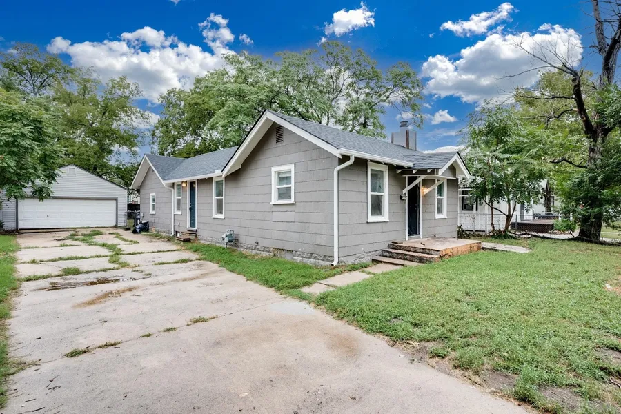 Welcome to this updated and charming 3-bedroom, 1-bathroom ranch home, perfectly situated at 2135 S Exchange St in Wichita. Ready for its new owner, this home boasts a clean and modern living space, thanks to a recent refresh that includes new paint, flooring, and newer appliances. The functional single-story layout is complemented by an inviting exterior. Enjoy the privacy and security of a fully fenced-in backyard, ideal for relaxation or play. Peace of mind comes standard with a recently replaced roof and gutters. A major highlight of this property is the oversized, detached 2-car garage, providing ample room for vehicles, storage, and hobbies. This home is located in a well-established and convenient neighborhood, just a short distance from local shopping and a scenic canal walking path. With its blend of updated features, practical amenities, and a desirable location, this property presents a fantastic opportunity for anyone seeking a move-in-ready home.