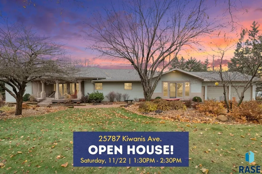 POTENTIAL 5 BEDROOMS!! Exceptional acreage living just minutes from Sioux Falls in a beautifully cared-for ranch nestled on 2 serene acres. Step inside to a grand foyer that leads into a spacious kitchen featuring a center island, gas range, stainless steel appliances, and an impressive walk-in pantry. The open-concept design flows effortlessly into the dining area with access to the maintenance-free back deck—perfect for taking in peaceful views. The expansive family room is filled with natural light and showcases a cozy gas fireplace. The generous primary suite offers true retreat-style living with dual walk-in closets and a luxurious primary bath complete with double sinks and heated floors. Main-floor laundry adds everyday convenience. A second main-level family room provides flexibility for a formal dining space, additional living area, or even conversion into another bedroom. Two ...
