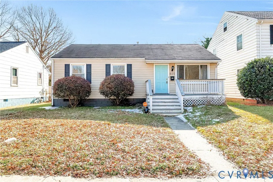 Welcome to 805 North 37th Street, a single-story ranch located in the Chimborazo neighborhood near Church Hill. This 3 bedroom, 1 bath home offers 1,164 square feet of straightforward, functional living space. You enter into the living room with original hardwood floors and a large front window overlooking the porch. Off the living room is a formal dining room with hardwood flooring and an overhead light with dimmer. The kitchen includes butcher block countertops, white cabinetry, a subway tile backsplash, a small prep area, and a gas 4 burner stove. Just off the kitchen is a laundry room with hookups for a stackable washer and dryer, a natural gas hot water heater, a top of the line Square D electrical panel, and access to the rear deck. Down the hallway is a full bathroom with tile flooring, a single vanity, tub/shower combination, and linen storage. Bedroom 1 features hardwood floors, an overhead light, and a closet. A separate flex room can serve as Bedroom 2, an office, nursery, or additional living space depending on your needs. The primary bedroom includes two open closets, a wood-burning fireplace, ceiling fan with light, and French doors leading to the rear deck. The exterior offers a front wood porch with steps, street parking with sidewalk access, rear alley access, and a fully fenced backyard with a chain-link fence, a secondary fenced area with storage shed, and a large rear deck with multiple entry points. The home also includes keyless front entry and a Vivint security system.