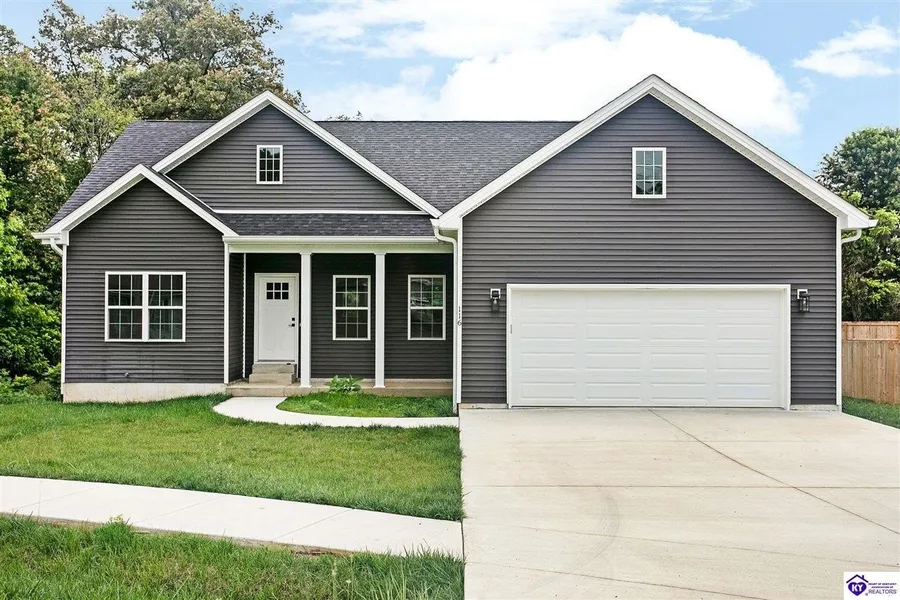 Experience modern comfort and style in this brand-new home in charming Vine Grove, KY. Set on a spacious 0.34-acre lot, this thoughtfully designed 3-bedroom, 2-bathroom residence offers 1,414 sq. ft. of open, airy living space tailored for today's lifestyle. Step inside to find sleek, contemporary finishes—from granite countertops in the chef-inspired kitchen to the smart garage door opener equipped with a built-in camera for extra peace of mind. The open-concept layout seamlessly connects the kitchen, dining, and living areas, making it ideal for both everyday living and effortless entertaining. Unwind on the covered front porch or enjoy the large yard perfect for outdoor fun, gardening, or creating your dream backyard retreat. Tucked into a quiet neighborhood yet close to everything, this home offers the best of both worlds—small-town charm with quick access to local schools, parks, shopping, and dining. Be the first to call this beautifully crafted property your home. Schedule your private tour today and discover a fresh take on Kentucky living.