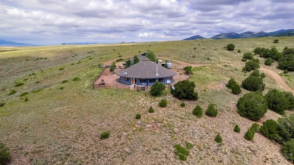 Luxurious Mountain Retreat in Westcliffe, Colorado. No covenants or HOA. Discover your dream home with panoramic views of the Sangre de Cristo Mountains outside of Westcliffe. This fully renovated, 2,053 square foot round house combines rustic charm with modern comforts on 35 acres. Step inside and be greeted by the rich warmth of custom beetle kill pine window shutters and woodwork, which lends a unique and inviting character to every room. The spacious living area features a cozy wood-burning fireplace, creating an ideal setting for relaxing evenings or entertaining guests. Fireplace has exclusively burned Aspen wood. The heart of the home is its custom kitchen, designed for both function and style. Equipped with double ovens and a 36" Thor cooktop, it's a chef's dream. A generous walk-in pantry provides ample storage and power outlets, making meal prep and organization a breeze. The home boasts three generously sized bedrooms and 2.5 beautifully appointed bathrooms. The master suite and one additional bathroom feature luxurious walk-in tile showers. Comfort is paramount with central air conditioning and a newer furnace ensuring a pleasant environment year-round. The tankless Rinnai water heater will provide unlimited hot water. A whole-house generator will keep the home running. Two propane tanks ensure reliable and efficient heating for those cooler mountain nights, and there is a water filtration system. Outside, there is an oversized, detached two car garage. This property has Starlink. Property is located less than 3.5 miles from SilverWest Airport/Butler Field, less than 1.5 hours from Monarch Ski Resort, and near hunting, fishing, rafting and mountain biking.