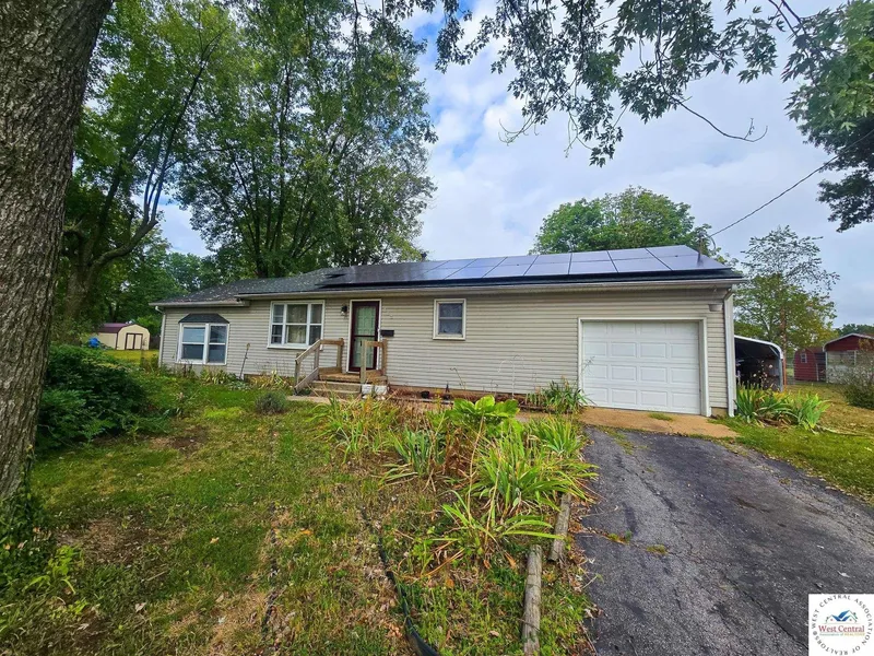 Energy efficient home on huge corner lot in Windsor! 3 bedroom (1 nonconforming), 1 full bath with solar panels installed recently, which help to reduce the electric bill substantially. The two lots are approximately 0.56 acres in total (132'x78' and 90' X 156.75'). Two bedrooms share a nicely finished Jack and Jill bathroom and on the west end of the house is a huge 3rd, nonconforming bedroom with access to the backyard. There is also a detached, two car garage perfect for additional parking, storage, or a workshop. Both the lot with the home and the lot with the storage shed behind it are included. There is also additional carport parking/storage next to the attached garage. Backyard of the home is fully fenced. Roof only 5 years old and water heater was replaced in 2025. Come take a look!