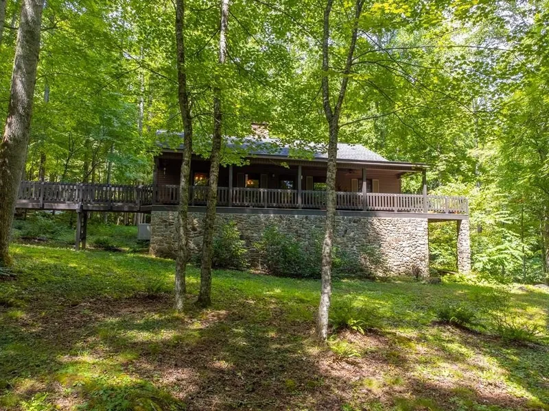 A rare Smoky Mountain offering with TWO complete homes on 7.85 acres! Perfect for those needing a second residence for family, guests, caretakers, or a long-term rental. The main home (3 bedroom 2 bath) features vaulted tongue-and-groove ceilings, maple hardwood floors, and a double-sided stone fireplace in the open living and dining area. The kitchen offers stainless appliances, ample cabinetry, an island with breakfast bar, and a spacious butler's pantry/mudroom. The primary suite includes a walk-in closet and spa-like bath with quartz vanity, heated tile floors, and a custom step-in shower, while two guest bedrooms share a Jack-and-Jill bath. A full basement provides an oversized 3-car garage and storage. The second home (2 bedroom 1 bath) offers open living, spacious eat-in kitchen with breakfast bar, a covered porch, private deck, and attached carport. Short-term rentals are not allowed, but long-term rentals are permitted. A bonus camping area with bunkhouse, fire pit, outhouse, and hot outdoor shower adds versatility. Enjoy sunny additional building sites, gardening areas, bold creeks, and usable outdoor space, making this a peaceful mountain retreat perfect for your family!