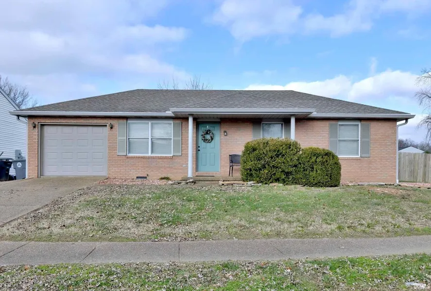 Cozy Ranch on Evansville’s east side in Valley Downs Subdivision, short drive to shopping and restaurants! This updated home has 3 bedrooms, living room, eat-in kitchen, full bath, laundry room, and attached garage. Living room offers vaulted ceiling with large window and ceiling light fan. Kitchen includes ample cabinets, all appliances, dining area, easy access to laundry and garage, plus back door to deck and fenced yard. Full bath with tub shower combo and vanity with granite top. Back yard has wood privacy fencing, large deck, and storage shed; large corner lot - Immediate possession!