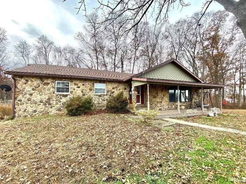Small private farm with ELEVEN ACRES & beautiful stone ranch-style home w/full finished basement totaling 3085 sq ft. of living area. Ideal for farming. Fenced for livestock w/huge pole barn set up for animals. Prior owner raised cattle. Estimated 7 acres high-tensile & 2 acres hot wired. Rare & valuable bonus: FREE NATURE GAS. Great room with cathedral ceiling, lg 5 panel bay window and stunning stone floor to ceiling gas fireplace. Sunny formal dining room w/doors leading to a deck. Kitchen has tons of Amish oak custom cabinets, black stainless steel appliances (nice) and a pantry cabinet w/pull out drawers for storage. Dedicated laundry room off kitchen w/nice cabinets for storage. Primary bedroom suite w/doors leading to outside and upgraded bathroom. Additional 2 bedrooms plus second bathroom on main level. Impressive lower level w/1375 sq ft featuring wide open floor plan family room PLUS additional room that could be used for 4th bedroom or office/craft room. Large mechanical room for great storage. Roof is 3 yrs old. Above ground pool with deck.
