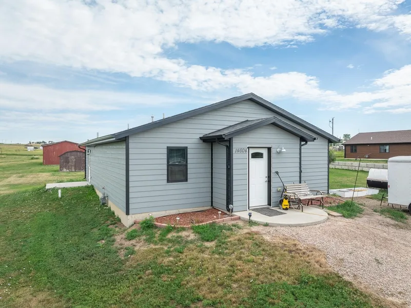 Listed by Jeremy Kahler, KWBH, 605-381-7500. Move in ready ranch style home with ZERO STAIRS on a 1 acre lot outside Rapid City limits! *Built in 2018, and offering a neutral color scheme, unique stained concrete floors and good natural light, this home is ready for new owners *3 bedrooms, 2 bathrooms and 1,240sqft *Open concept front part of the home with a living room that opens to the eat in kitchen, making entertaining easy *Comfortable kitchen with shaker style cabinetry, black and stainless steel appliances and an island for convenient meal seating *Just down the hall is the laundry room and full bathroom with a combination tub/shower *3 bedrooms in the back of the home for privacy, including the master suite with sizable ensuite bathroom with dual sinks *Detached 20'x32' barn plus shed for outdoor storage or hobby space *The landscaping at this property is a blank slate- bring your ideas to transform this 1 acre property as you wish *Gravel driveway for added offstreet parking. Located just outside city limits, and still easy access to I90, Rushmore Crossing and more, call today!