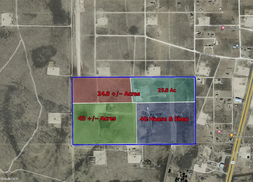 Developer Dream Offered Many ways, Located on The Ector / Crane Co Line a few miles South of Pleasant Farms Can Be subdivided & Sold off in Small Tracts, 130 Acres High Fenced ready to be stocked with African Plains Game or whatever Not Many Trees, though. 2400 sqft 5 Bed 2 Bath Barndominium Lodge w/ 20' Overhang, 2700 sqft 3 Bed / 2 Bath Doublewide w/ Carport (Fair Condition used as Lease House), 2400 sqft Concrete Floor Shop, 200' x 200' High Fence Dog Run w/ 2/10th acre Lake, Caliche Pit, Development on 3 Sides with roads & other developments that can extend to flow. Don't Miss this Great Investment Opportunity. Included is Plat from Tracts just North of Ranch, the green are sold.