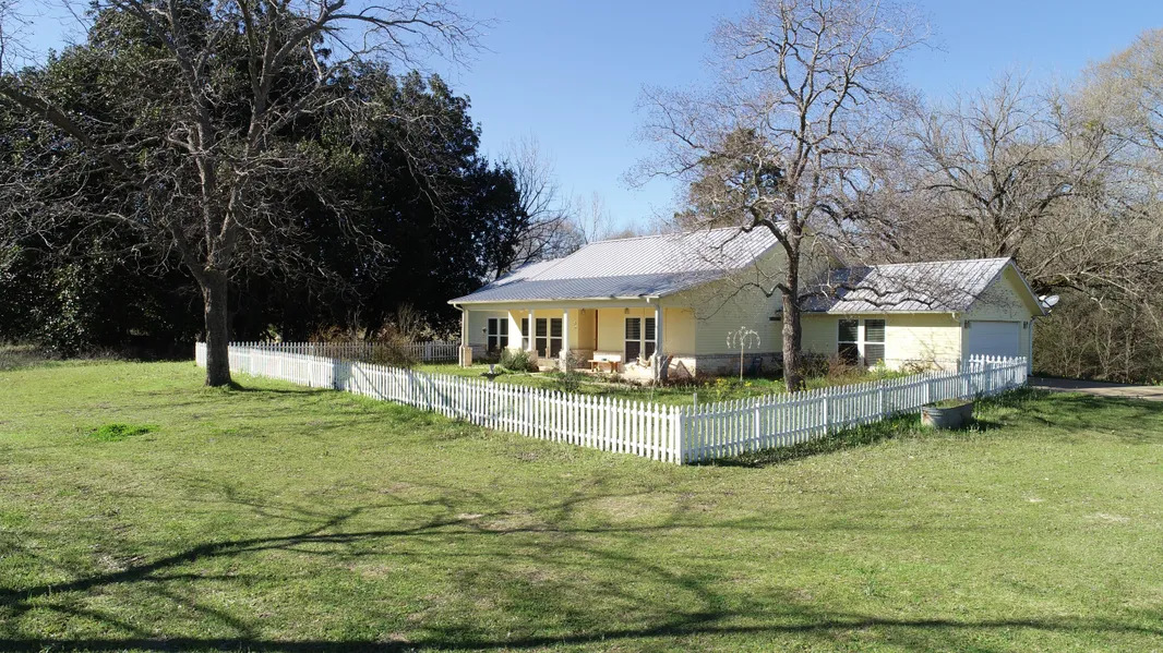 Ranch style home sits on 42+/- acres. 1800 + sq ft custom home built in 2011, 3BD 2 Bath, open floor plan for living, kitchen, dining. Custom kitchen cabinets with granite countertops & dine in kitchen area with walk in pantry. Ten foot ceilings throughout the house, hardwood flooring in living areas with tile in kitchen, bathrooms & utility room. Split bedroom plan with master bedroom & large master bath with jetted tub and walk in shower. Spacious guest bedrooms, second bathroom & large utility room with entrance to attached 2 car garage. Land is approx 60% open pasture with pecan & black walnut trees & 40% woods with a mix of pine & oak. Great lake site with spring fed creek that begins on property. Metal Barn. Come see to appreciate!
