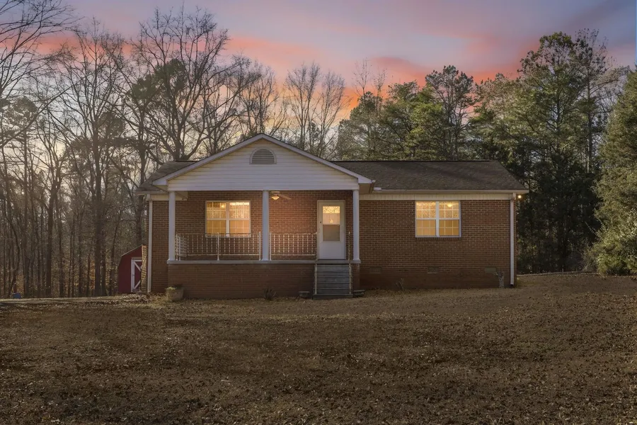 Do not miss this charming all-brick, one-story home nestled on a peaceful and level 3.45-acre setting located in an USDA area with 100% financing available, if qualified. Built in 1994 with longevity and energy efficiency in mind, this well-maintained property features exceptional insulation throughout—including 19 inches in the attic, 6 inches in the walls, and 12 inches in the flooring—offering comfort and efficiency year-round. Inside, the expansive 23' x 15.6' living room is filled with natural light and provides ample space for relaxing or entertaining. The kitchen offers abundant cabinetry and generous prep space, with bar seating that opens seamlessly to a spacious dining area—ideal for everyday living and gatherings. Down the hall, you’ll find a convenient laundry room and two generously sized bedrooms, one featuring a walk-in closet, that share a full bathroom. Step outside and enjoy quiet mornings or evenings rocking on the covered front porch, while the detached shed provides additional storage. The home is currently served by well water, with city water available at the street for future connection if desired. The HVAC system is believed to be approximately 8 years old and is powered by propane for added cost efficiency. This move-in-ready home offers the perfect blend of privacy, open space, and practicality—plenty of room to explore, garden, or simply enjoy the peaceful surroundings. Conveniently located near local shopping, including multiple nearby grocery stores, dining options and with easy access to I-85, this property has been lovingly cared for by one family and is now ready to welcome its next owner. Taxes are currently at a higher price due to this not being a primary residence. To find out what a more accurate tax amount for a primary residence don't hesitate to get in touch with the Cherokee County Tax Assessor's office.