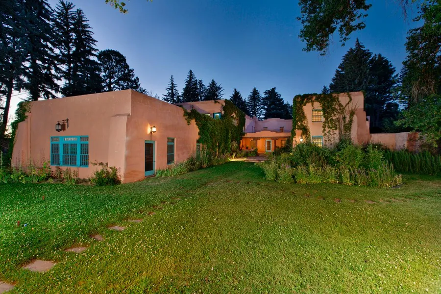 El Rancho de la Mariposa. Set against the rugged beauty of Taos Mountain, on over 14 verdant acres, this unique property reflects the tranquility and grandeur of a bygone era. With 11 of its acres fully enclosed by over 1,000 linear feet of walls and wrought iron gates, the estate offers privacy and a feeling of secluded removal in a prime situation one half mile from the business heart of Taos. On the grounds, magnificent Douglas Fir trees tower more than 60 feet over a grassy understory, landscaped with perennials and flowering shrubs which are irrigated by an extensive underground system. The 14,669 sf mansion, built in the mid 1930's, is an exquisite time capsule of the era. Beautifully outfitted with classic accoutrements, such as custom, wrought iron window grills, Art Deco light fixtures and hand-carved wooden accents and columns, this grand property includes two indoor swimming ...