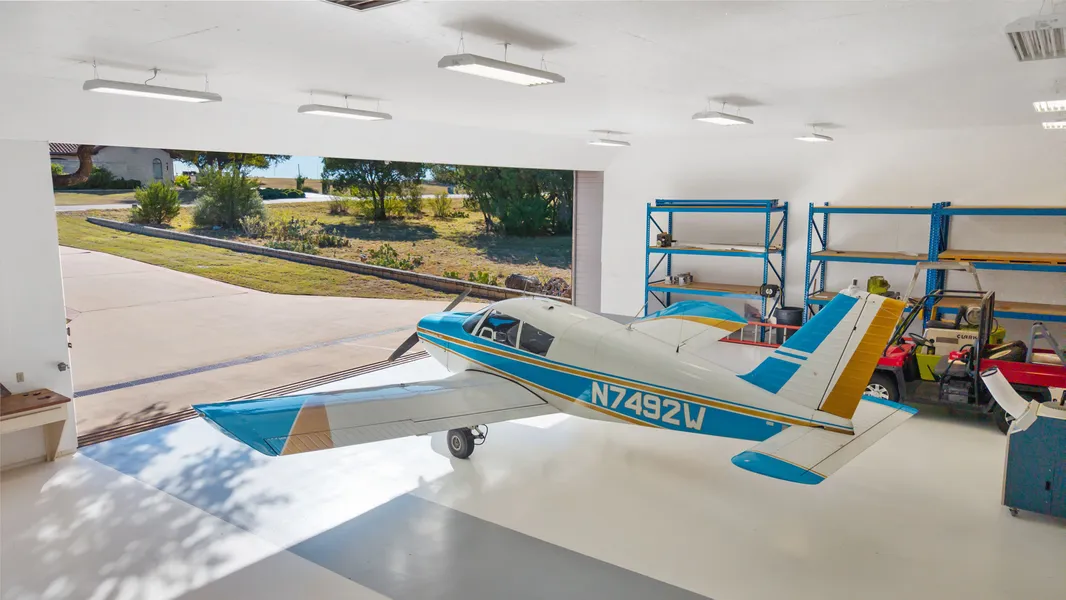 Rare aviation lifestyle property adjacent to the gated Horseshoe Bay Jet Center. This 0.68-acre lot includes a remodeled 2-story home, detached guest casita, and a 2,700+ sq ft aircraft hangar with direct taxiway access to the private 6,000-ft lighted runway.