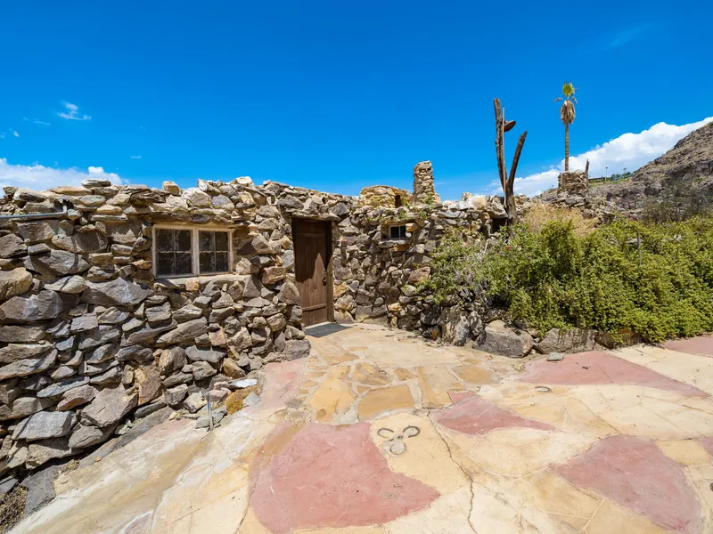 This historic rock home built by R. Lee Miller in 1929 comes to market for the first time in 45 years. Perched above Araby Cove with panoramic views of the desert, this property offers privacy and solitude. There is a detached structure used previously as the garage and detached studio casita with full bath which has been used as an artist's studio in the past. This home has two fireplaces and an original stove pipe. Look closely at the detail of the handcrafted doors, windows and shelves, ironwork on the door latches, ceiling beams and handmade fireplace tools. Look even closer and you will discover a hidden room behind a bookcase. Look closer still and you will see the original owner, Perle Martin Wheeler carved her named into a nook in 1931. These homes have a storied history (see attached articles) of which many myths and legends have endured over decades. The roof was just redone Au...