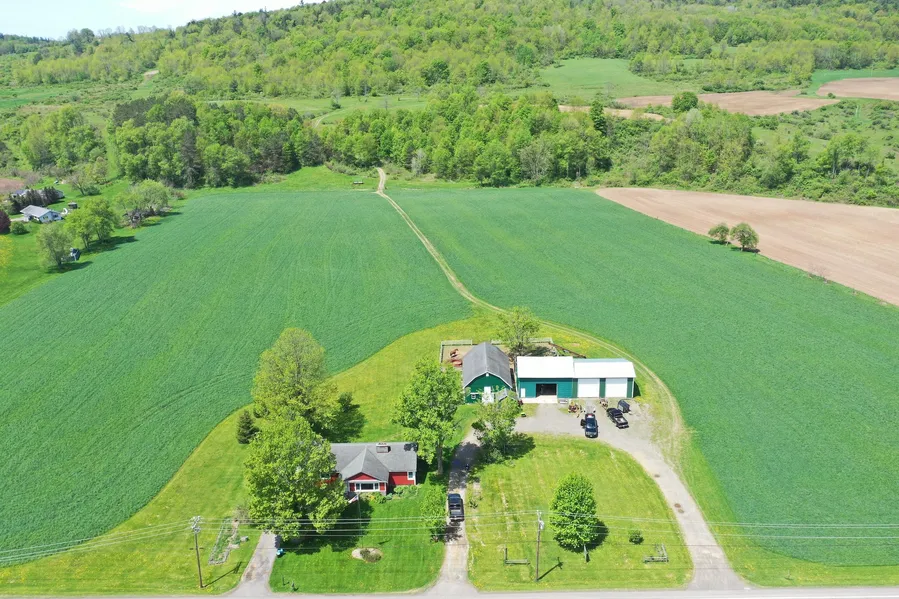 Don’t miss this rare opportunity to buy a small farm with river bottom soils. This multi-use property features a charming c. 1950 ranch house with three bedrooms and one bath, with many updates while still retaining several of its original features, such as a built-in linen closet in the hallway, two laid stone fireplaces, and a room divider bookcase in the living room area. The kitchen has granite countertops with original cabinetry set off by a new refrigerator, range/oven, and dishwasher. There are hardwood floors in the main living areas, and the full basement is partially finished with a nice bar area. The house features newer windows and siding and has a lovely stone patio to relax and enjoy the views across the fields and pasture. There is also a two-car attached garage. The picturesque, two-story dairy barn is 30’ by 50’ and has been updated with new metal siding, has plenty of storage space for feed, hay, and features multiple horse stalls and a three-rail wood fence around a large paddock behind the barn. A 32’ x 28’ pole barn is currently used as a workshop and equipment storage, has a cement floor on one side, and features (2) approx. 12’ tall overhead doors. In addition, there is another one-story general-purpose barn that is 22’ x 23’. Behind the house and barns are 13 acres of flat river bottom tillable ag land, which is currently planted to mixed hay and, weather permitting, has provided up to 5 or 6 cuttings in a season. Beyond the tillable fields are approx. Eight acres of fenced-in pasture with a .5+ acre pond. Behind the pastures are another 23 acres of mixed hardwood and pine woodlot. There are many options for this diverse property, such as a small farm operation with crops, horses, livestock, residential and small businesses utilizing the outbuildings. Located in the heart of New York State, this area is renowned for its wildlife conservation and many outstanding outdoor recreation places. Among numerous options, Ambler State Forest, with 629 acres, is only 5 miles away and offers hunting, hiking, camping, and fishing. Chenango Lake, a 133-acre lake, offers a public hand launch for boats and fishing for large and smallmouth bass among many other species in the summer and is popular for ice fishing for yellow perch in the winter. The Unadilla River is very close by and provides excellent canoeing and fishing for trout, walleye, and smallmouth bass. Amenities are available within 3 miles in the village of South New Berlin and miles away in Norwich. Additional shopping, restaurants, and entertainment are available in less than half an hour in Oneonta or within 50 minutes in Binghamton. NYC/George Washington Bridge is less than 3 hours.