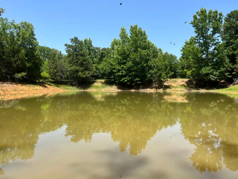 The pond is located in the back of the property and is surrounded by trees providing a nice spot to hang out under a shade tree to fish and appreciate the big Oak and Pine trees that line the banks.