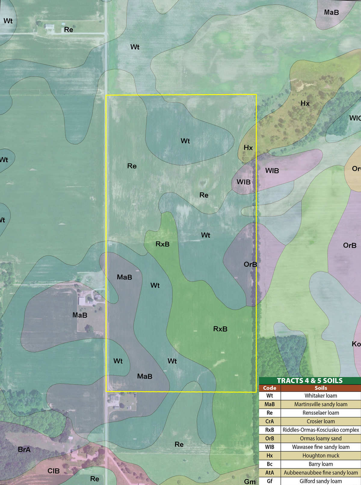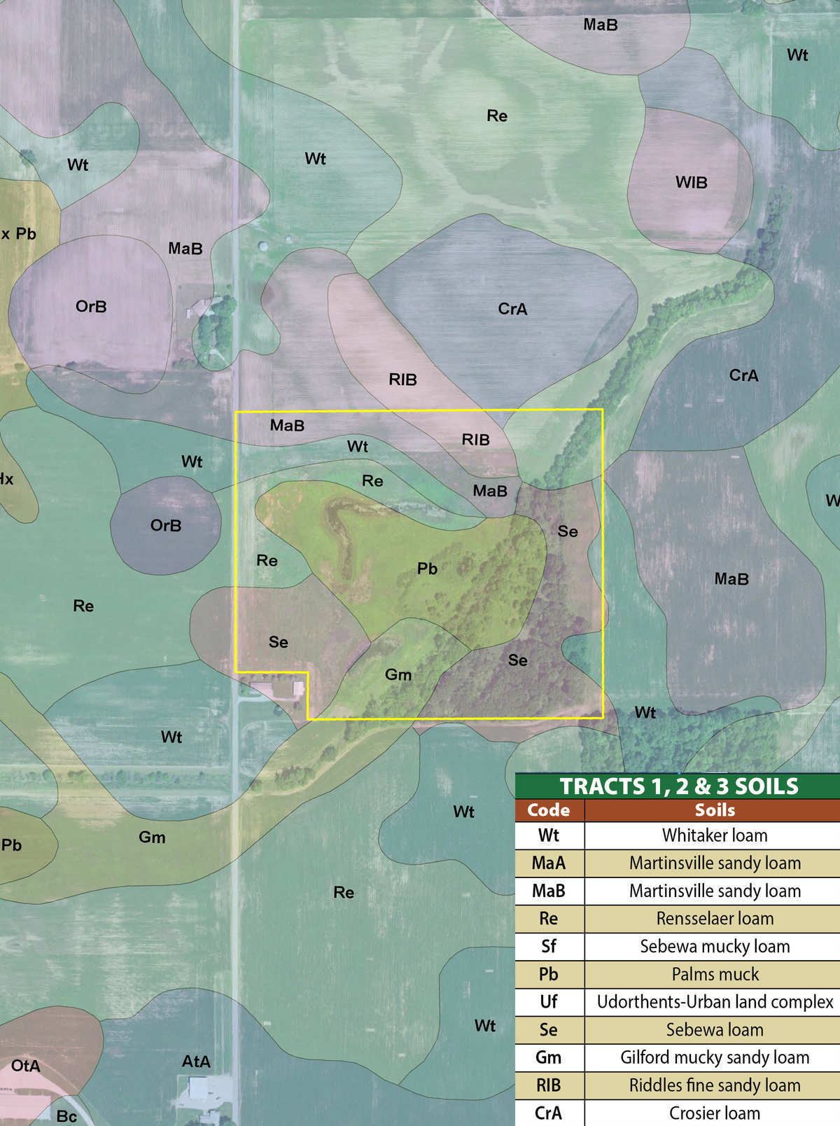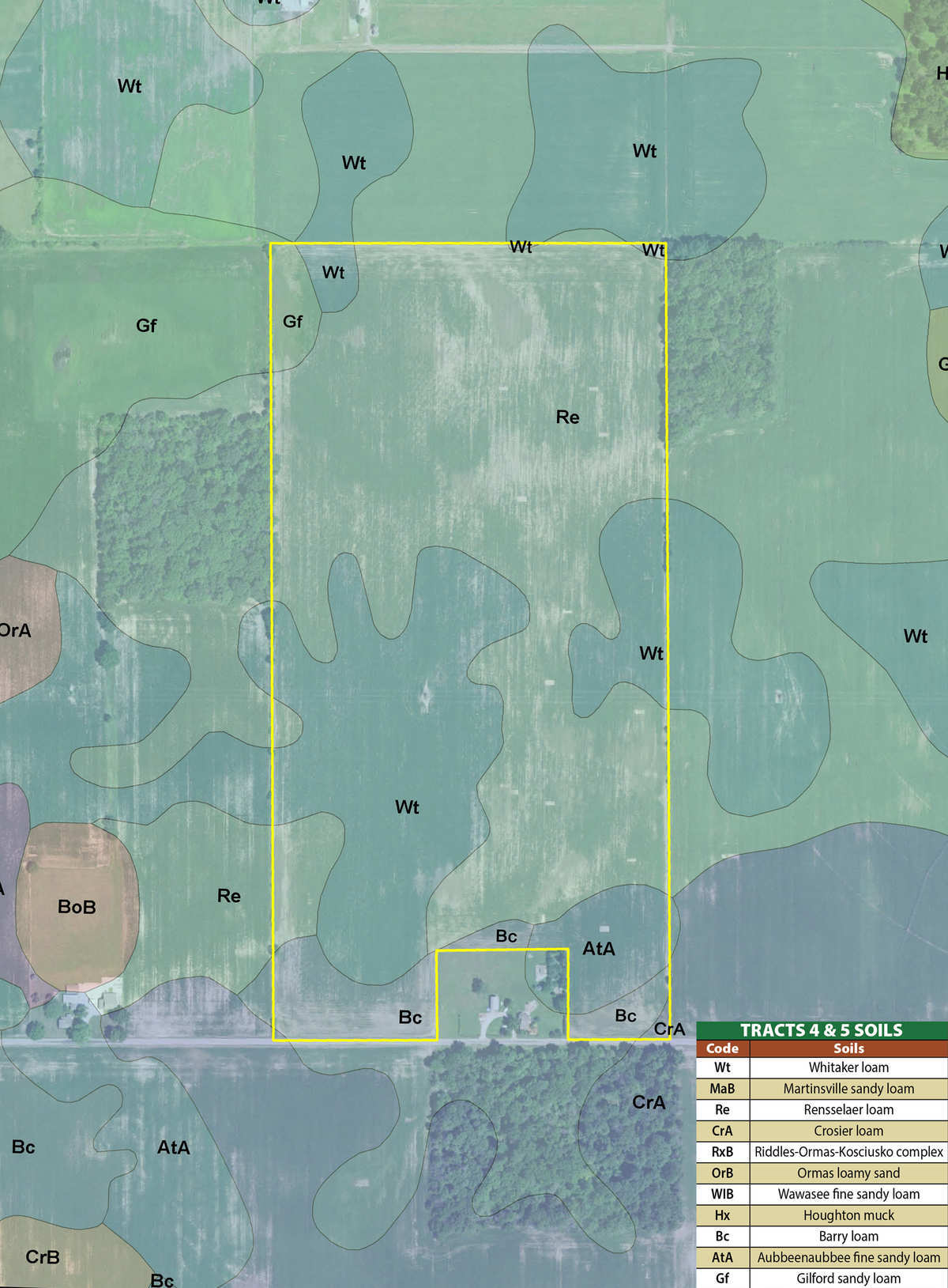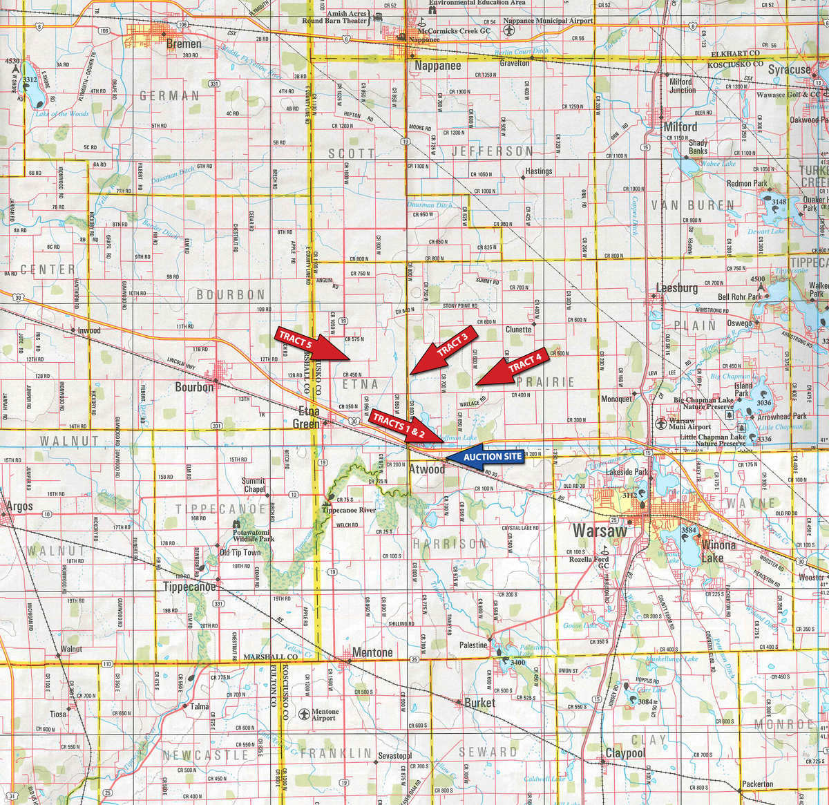 Tract 5: From US 30 at Etna Green, turn north on SR 19, 1.5 miles to CR 500 N, the turn east 3/4 mile on north side.