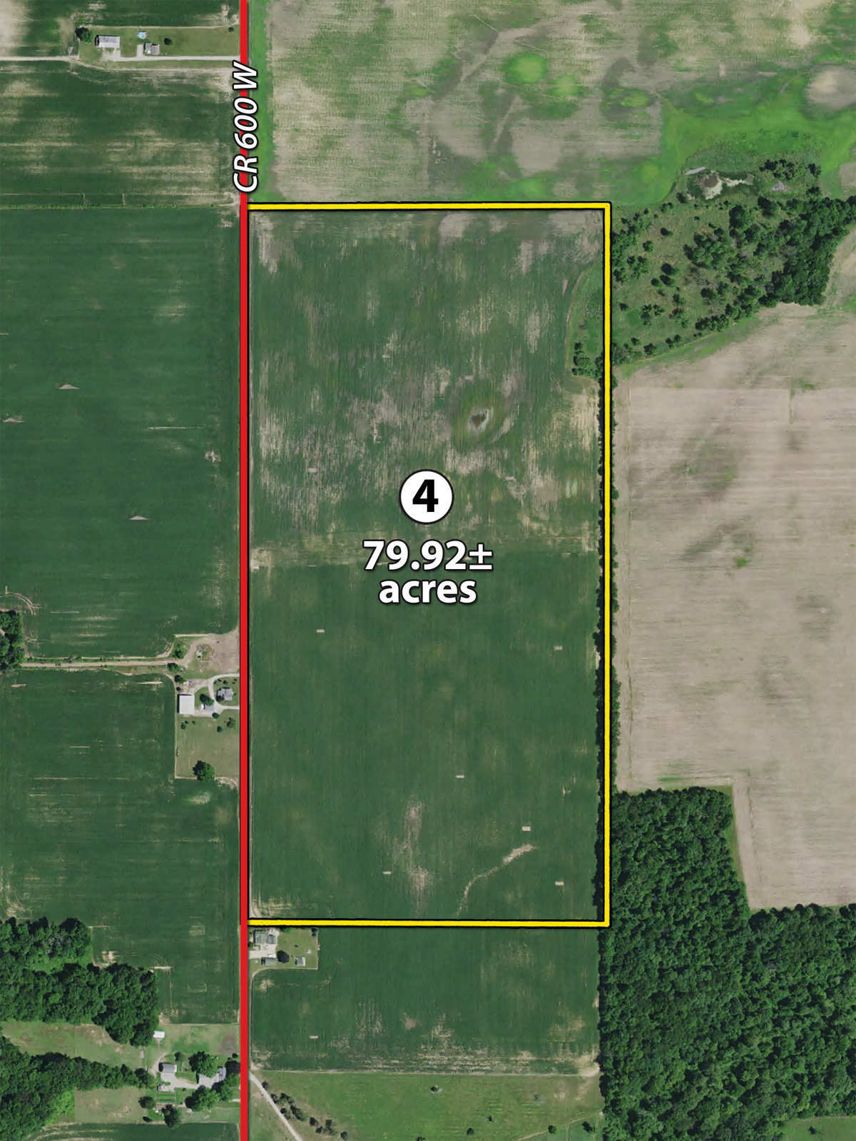 Tract 4: 79.9 ac Mostly tillable productive land on CR 600 W.