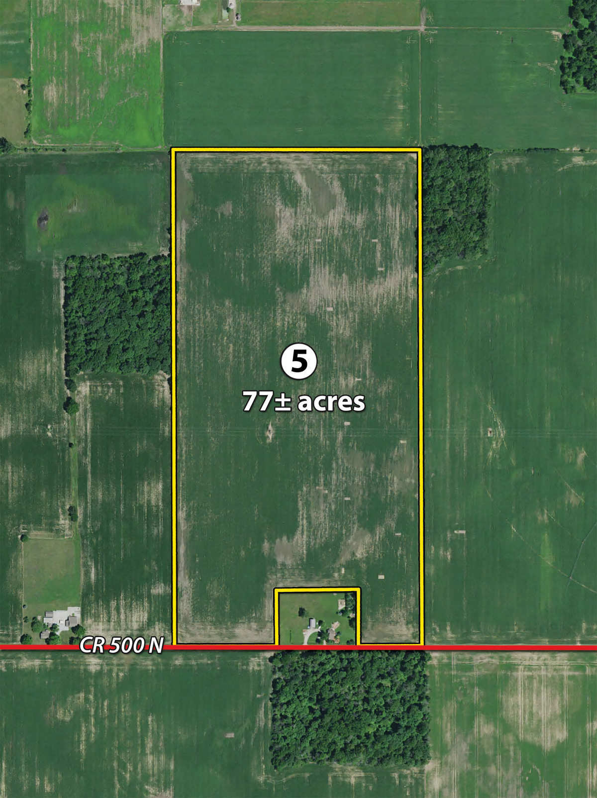 Tract 5: 77 ac Etna Township, tillable land with road frontage on CR 500 N just east of SR 19.