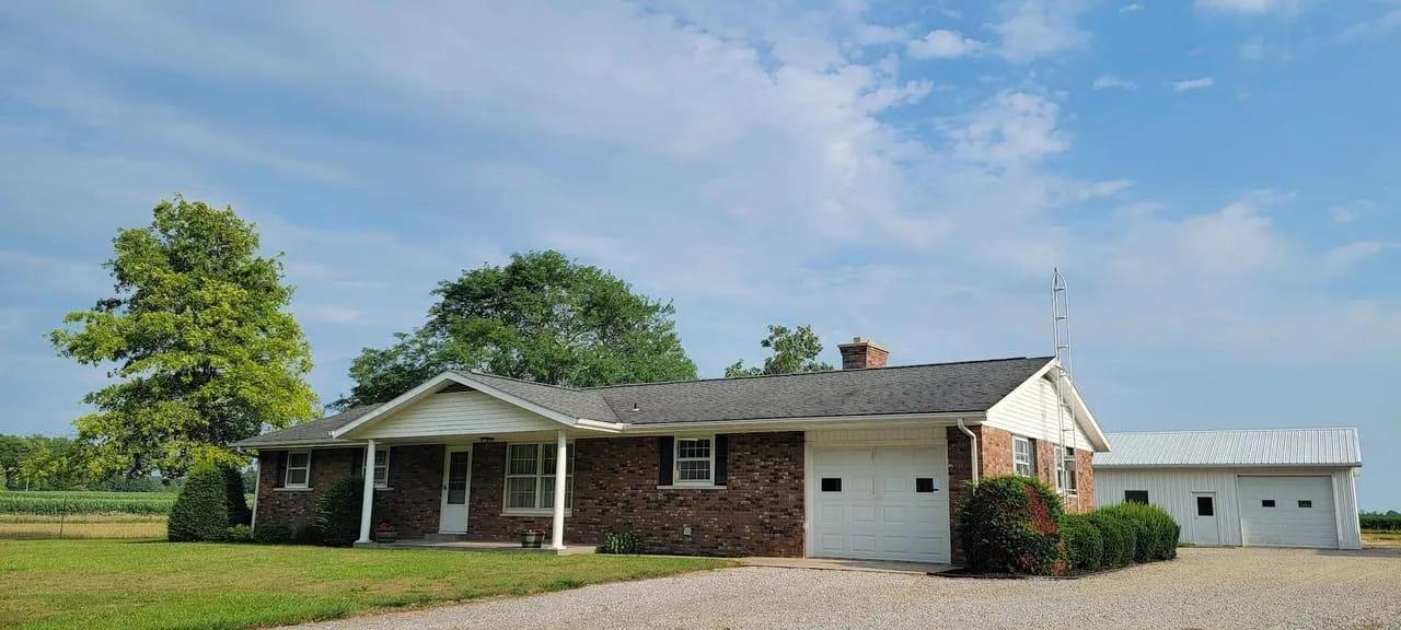 Beautiful 9.3 acre mini farm to be offered at public auction on August 31, 2023 @ 6:30 pm. This property features a 1430 sq ft Ranch style brick Home with attached garage, 28x32 insulated detached garage, 48x65 pole barn, 32x53 open-front shed, recently installed fencing for pasture.
