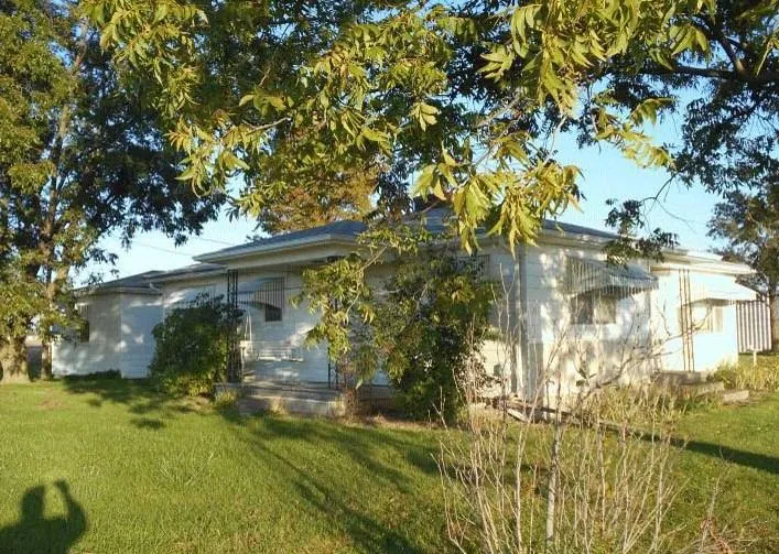 The homestead consist of a 2 bedroom, 1 bath, 1400 sq. ft. ranch style, single story, frame house, that has aluminum siding, a shingle roof, and 2 car attached garage. The house has a full basement, with access from the breezeway, 1 year old LPG forced air furnace, full brick masonry fireplace with wood burning insert. In addition to the 2 bedrooms the house has a kitchen with built-in wood cabinets, family room, and a front room that was used for a combination formal living/dining room.