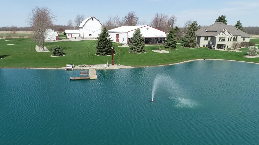 Pond: This gorgeous 1 acre pond has as its deepest to be 19 ft. deep. It is kidney shaped & has a pier & beach area. There is Windmill aerator system with an additional 220 amp air pump. The pond is surrounded by beautiful Blue Spruce pines on the hills.