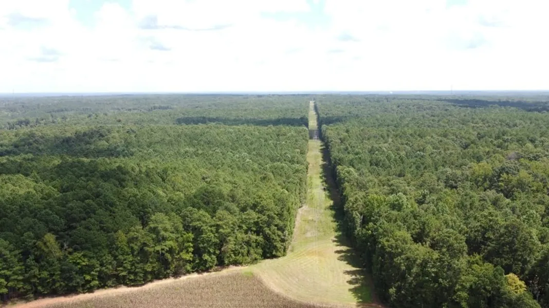 The property is primarily wooded with a healthy stand of pines and a network of interior trails for easy exploration. Its gentle rolling terrain offers both character and multiple potential homesites. A transmission line right-of-way intersects the tract, along with a traditional residential line that could provide power to a future homesite nestled in the woods.