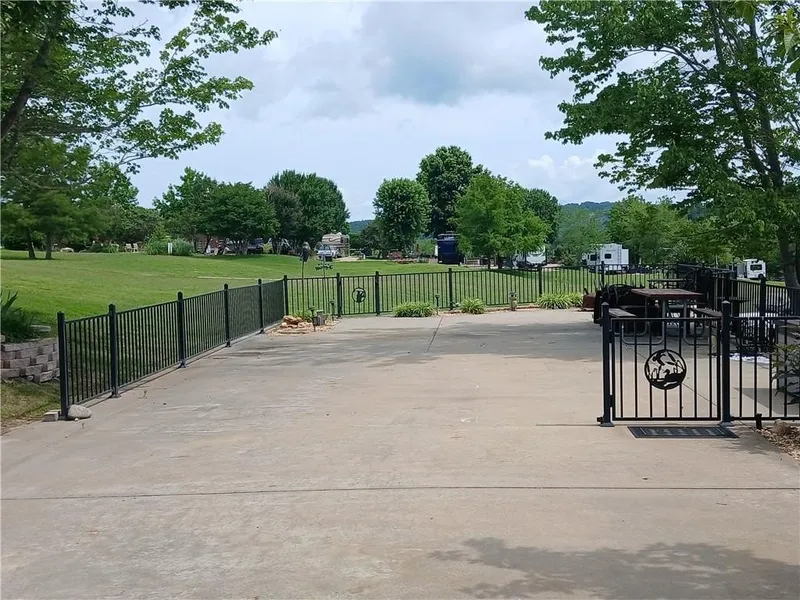 One of the most spectacular Lake views the resort has to offer, unobstructed sunsets await! Oversized lot with gorgeous landscaping kept simple for easy maintenance. Green Space behind the lot offers fewer neighbors and creates a sense of additional space. Perimeter fence is perfect for containment of curious pets or young children. Furnishings on the lot will convey. Amenities are endless with 2 pools, activity center, disc golf, courtesy dock access and boat launch on site. 30 minutes to Branson and easy walk to lake front access.