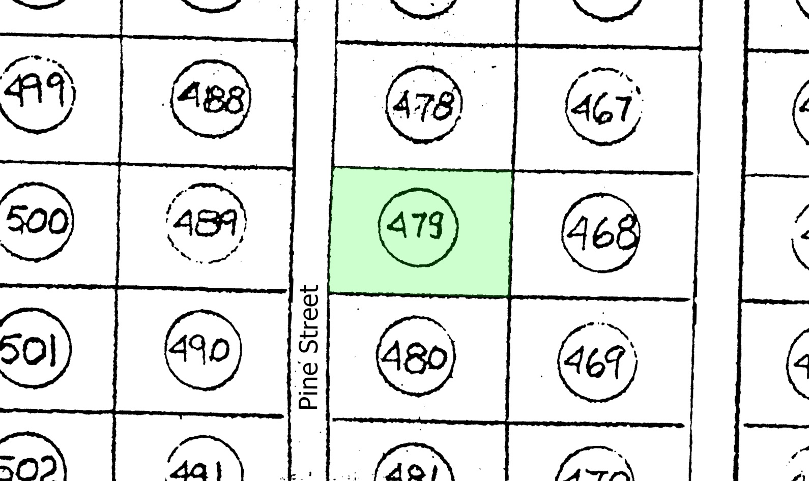 Platted Pine Street runs along the west side of the property. This road easement provides legal access. It has not been graded. You can choose to come in from Elm Street, which is about 139 yards to the west. Or you can grade Pine Street about 226 yards to the south where it connects with Laurel Drive.