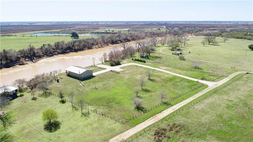 Make this recreational property located on the Brazos River your game day house or your next fishing spot! This open concept, 2,419 SQFT barndominium sits on 3.48 AC w/ incredible river views. Less than 2 mi from Rellis Campus & Approx. 12 mi from Kyle Field. Endless features of the property & home: Spacious back porch has outdoor kitchen, fire-pit area makes a great entertaining space, living features oversized windows & high ceilings w/cedar beams. Kitchen has large island/eating bar w/lighting, & bar area. Stone & wood work throughout. 2 Bedrooms/2 full Baths! Garage:heated/cooled, 1/2 bath, room above the garage could be finished out as bedroom/game room. Spray foam insulation. Must See!