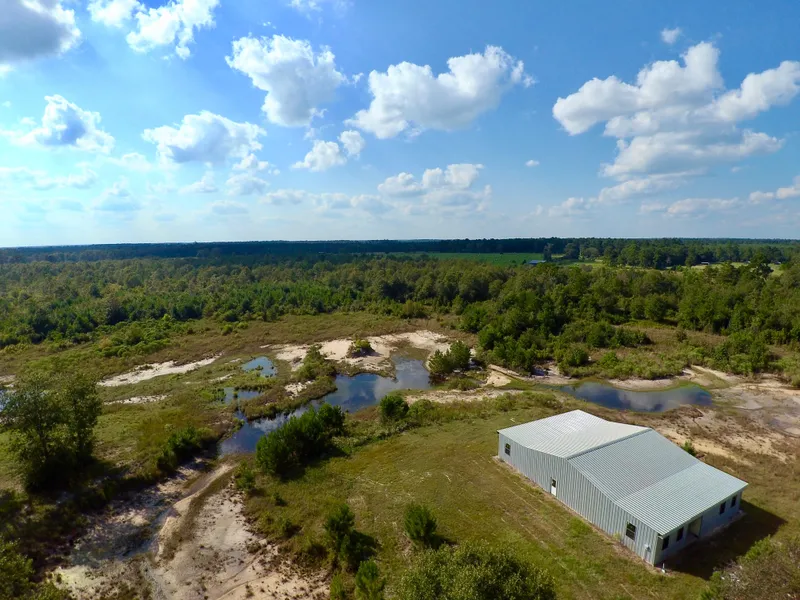 27.24+/-acres of mixed cleared and wooded land, with what could be a huge lake with a Metal Home overlooking it from the hill top! The Metal Home is 3600sqft and is mostly complete all it is needing is the finishings to make it move-in-ready! 50'x50' metal shop, a 20'x20' storage building there is also a water well in place that is 268' deep with a 4'' submersible pump, and 3 septic tanks as well as 3 electric hook-ups on site. T1 Line ran to it for High-Speed Internet capabilities.