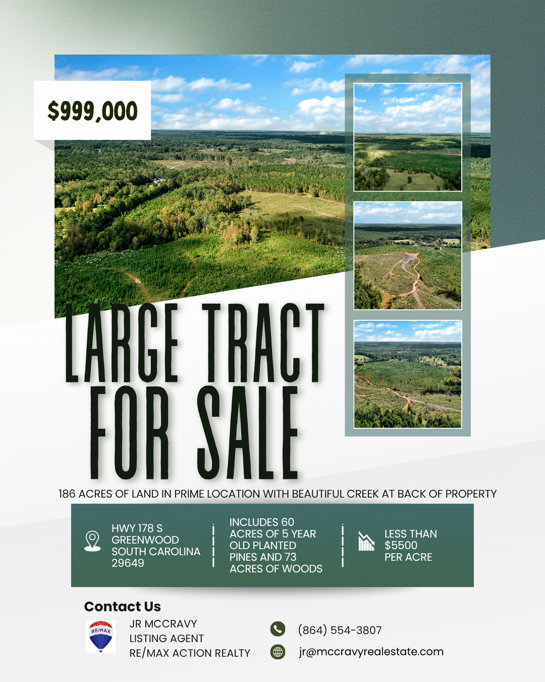 60+ acres of 5yo planted pines, over 70 acres of natural woods, creek at rear of property, hunting lease in place for 2025 only
