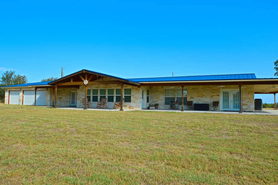 Austin Limestone exterior and a galvanized metal roof, cedar beams and posts, covered porches (approximately 12 x 205) make this a very attractive and desirable home. A great place to kick back and enjoy the view, watch the deer or put one in the freezer! This ranch is complete with a 24 x 23 shop/cottage, 42 x 54 metal shop, both of which are on concrete slabs. The water supply is a water well with Jett Pump and a 3000 Gallon Supplemental Tank, complete with a Pelican whole house water filter. Property is fenced and is agricultural exempt. A pole barn/horse barn and a deep stock tank complete this ranch. Again the possibilities for this little piece of heaven are endless! A must see and it wont last long!!! You will love it!!
