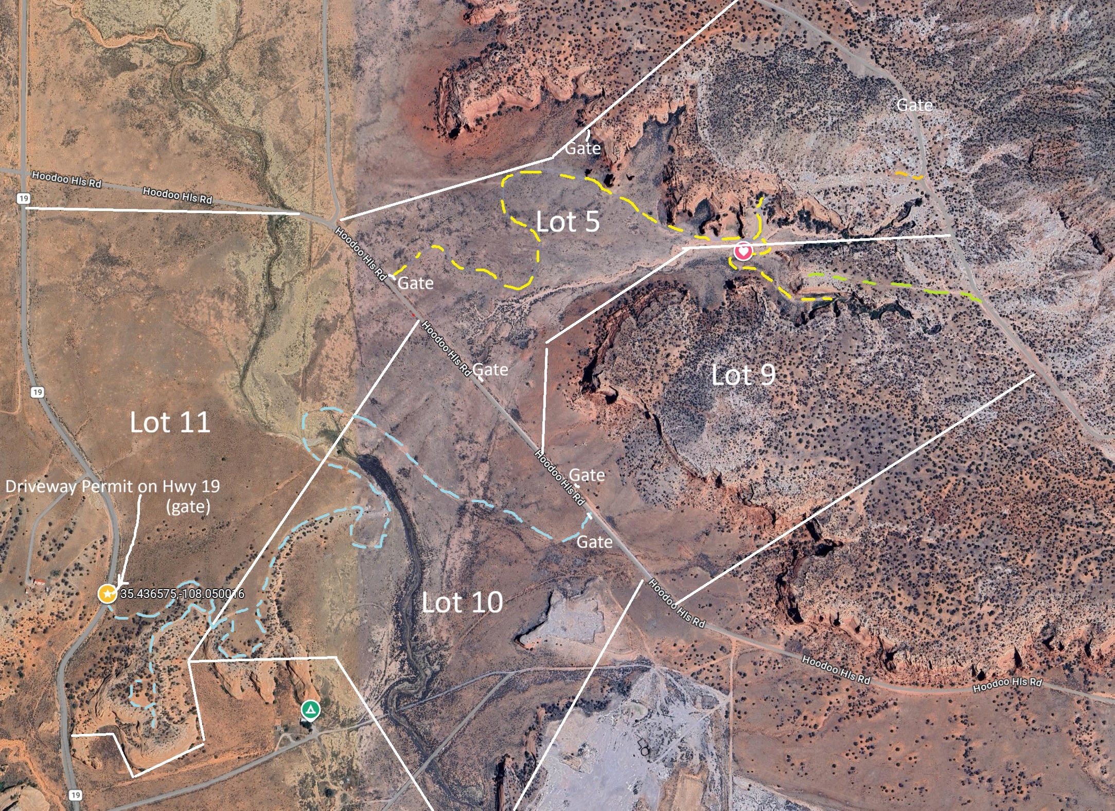 Research Parcel InformationFrom Albuquerque I-40 West to Prewitt Exit 63, turn right, right again then first left onto County Rd 19, pass the power plant on your left and through a red rock canyon to ranch-style entrance on east side of road. Follow Hoodoo Rd for 1/2 mile and lot 5 and 9 are to your left (north side of road), lots 10&11 to your right (south side of road), with lot 11 beginning at County Rd 19 where there is a gate permitted for direct access, or enter lots 5, 9, 10 from Hoodoo Hills Rd