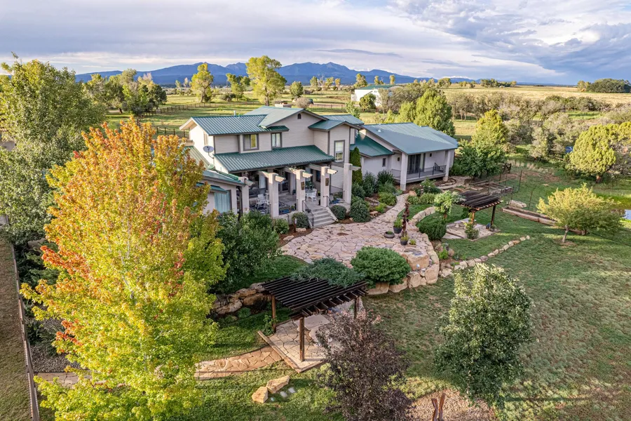 This 140 acre property features a beautiful, well appointed home with amazing views of the La Platas to the north and very long panoramic southern views. Looking west from the property you have a nice view of Sleeping Ute. The home has 4BR, 5BA, 2 offices and a very nice wine cellar.The Master bedroom is huge with 2 patios and a gas fireplace. There is a 5 piece master bath with a soaking tub an custom tile shower complete with a steam unit.