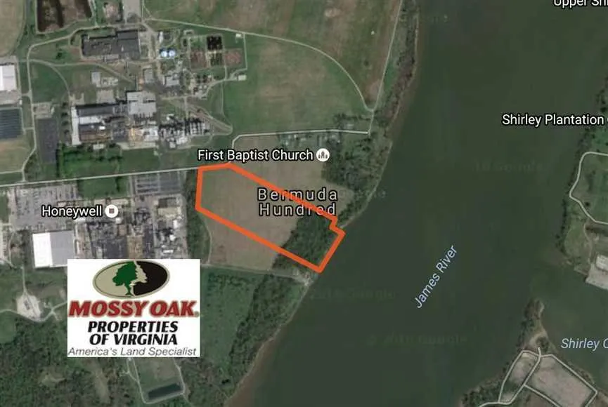 Located in the Historic Bermuda Hundred area of Chesterfield County, this amazing waterfront property sits on 26 acres overlooking the James River. Honeywell Corporation, Phillip Morris and Amazon are just some of the companies that have chosen this area to do business in. This great location allows for easy interstate access to several major arteries such as I-95, I-295, and Route 10. The land is currently zoned for agriculture which means you pay extremely low taxes until your ready to establish your project and go to work. This area does have county water and sewer is located approximately 3000' up the road. This parcel is highly unique offering a variety of possibilities on both land and water and th...