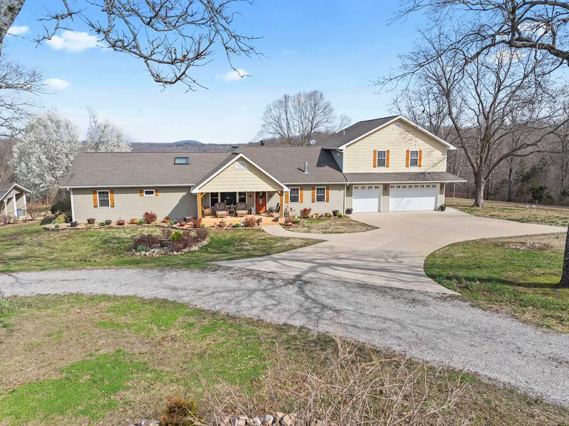 What a stunning home with custom features throughout in an incredible location just minutes to town with the ultimate in privacy and seclusion. Setting tucked back in the hills surrounding the wonderful community of Flippin, AR, is a true gem of a property. This loaded home is at the end of the road and offers the most you ask for in peace and tranquility with the convenience of being 5 minutes from excellent amenities. The stunning setting begins as you drive into the front of the home. You notice the meticulous landscaping and maintenance of the home, along with the custom shutters, large three-car garage, covered front porch, plentiful windows, and warm, inviting colors. Entering the home, you immediately notice the attention to detail and true craftsmanship. The crown molding, ample windows, real hardwood floors, skylights, brick accent wall, and open design all flow together like a ...