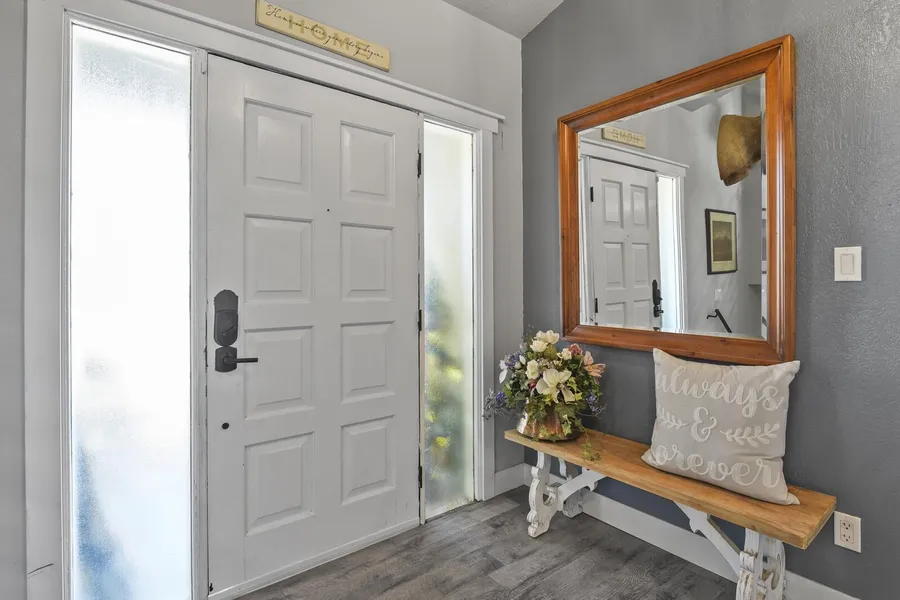 Remodeled, 6 BR Contemporary Country home in desirable Pueblo West. This home sits on 2.5 acres of land and offers sweeping Mountain Views. As you enter the home you're struck with the light filled main level that offers an open concept with the double-sided fireplace the focal point, surrounded by the kitchen, dining area & great room. The kitchen amenities offer an island with storage capacity & granite counters, stainless steel appliances and a kitchen pantry. Open to the kitchen is the dining room with a double-sided fireplace with a hearth & shiplap siding and the transom window allows light to flow. For those beautiful Colorado days, you can open your sliding glass door and enjoy outdoor dining & entertainment on the deck, all while taking in the mountain views. The great room surrounds the other side of the fireplace and has beamed ceilings, laminate wood flooring, floor to ceilin...