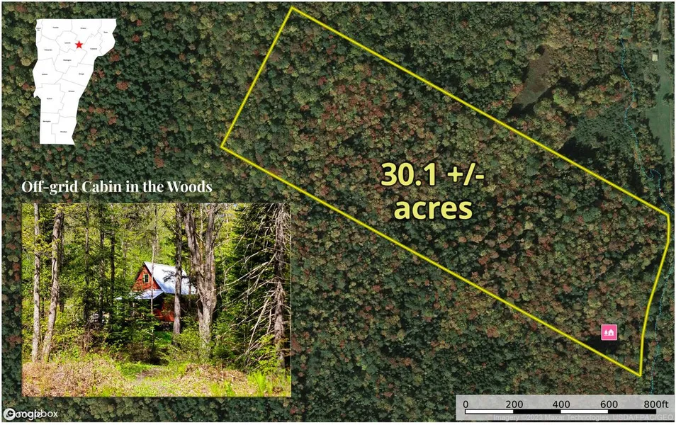 Great hunting camp or summer get-a-way on 30 +/- heavily wooded acres in the quiet town of Wolcott, VT. Accessed on a Class IV seasonal & unmaintained road, this simple off-grid camp comes furnished & features a propane range, propane lighting & a wood stove. There is a nice parking area for 3 - 4 cars off the road & a small bridge over a seasonal stream that leads to the cabin. A ladder from the first floor leads to a large, open loft area for sleeping. The cabin walls are not insulated but the second-floor ceiling is. There is about 1/3rd of an acre of cleared land around the camp; it is sloped but usable. There is no running water in the cabin. A traditional outhouse is nearby for nature's call. Used primarily for a white tail hunting camp by the sellers, there are some trails but the land is heavily wooded. Enjoy the front porch, walk the woods, hunt, shoot, hike & enjoy what Vermont has to offer. The sellers state the road is normally open until after hunting season & is used by snowmobilers in the winter as a cut through to main trails. Power is over 4000' away on the small Class III section of Turcotte Road. The property is being sold as a seasonal camp only, not a residence. There is no power, water or septic, and the camp is uninsulated & built on wood block piers. Land enrolled in the Current Use tax reduction program with 2 acres left out around the cabin. The road is rough but drivable by truck; this is last camp on the road. 4-wheel drive suggested for access. See the Forest Management Plan for more details about the woodland.