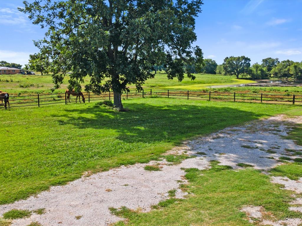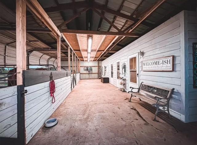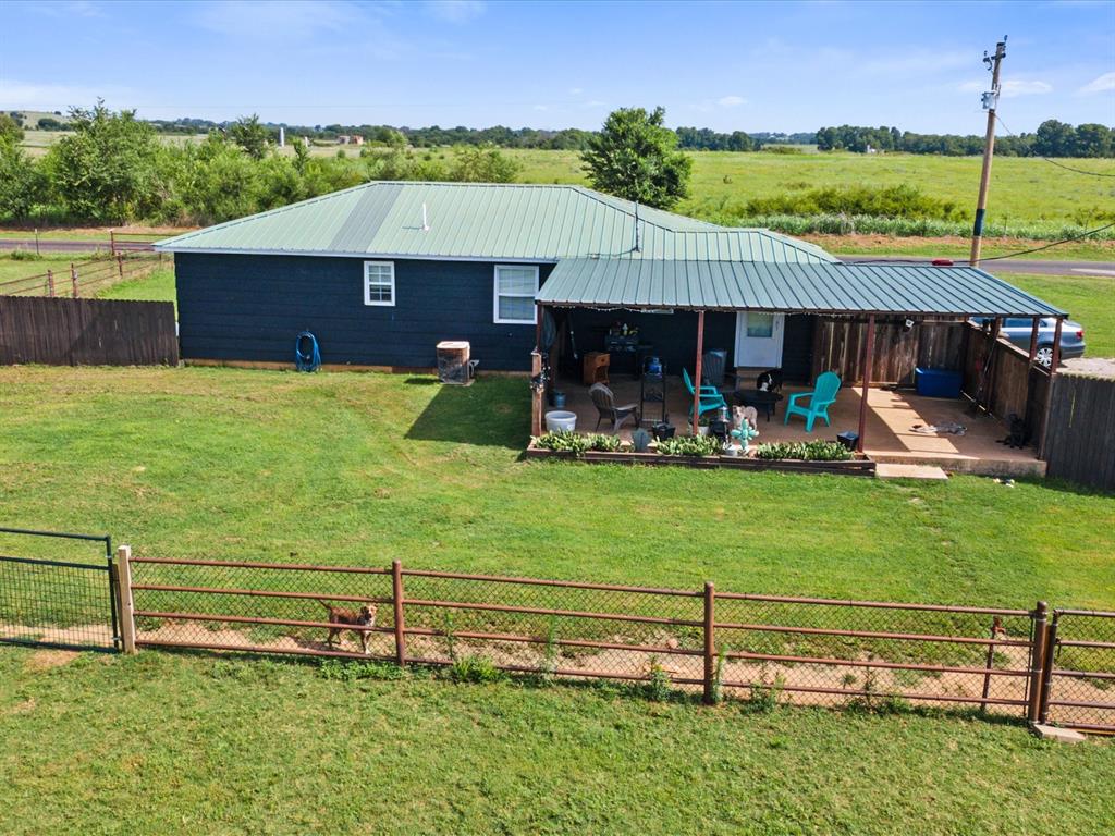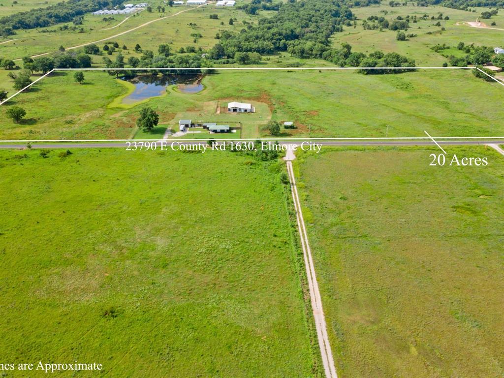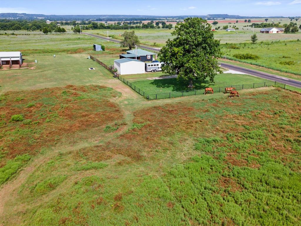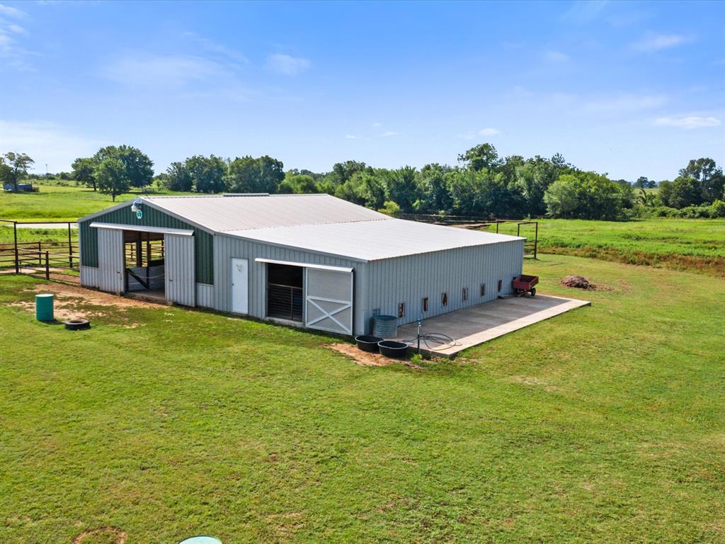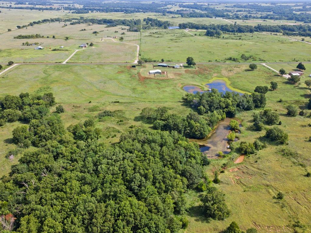 This updated property is ready for the horse enthusiasts or anyone seeking a fully equipped rural setup. The classic 2-bedroom, 1-bath home sits on 20 fully fenced acres and has been thoughtfully renovated inside and out. Enjoy real pecan hardwood floors throughout, an open-concept layout, and a spacious covered back porch that flows into a fenced backyard—perfect for relaxing or entertaining. Originally remodeled in 2017, the home received additional upgrades in 2024, including all-new interior paint and updated exterior siding in 2023. A storm shelter offers added peace of mind, and a 50-amp plug is available for RV or trailer hookups—ideal for guests or travel prep. Equine-ready and designed with care, the 30x40 main barn features a 28x40 addition, 4 horse stalls with individual 10x20 pipe runs, and a central 60x60 pipe pen. The barn includes a climate-controlled tack room, wash room with hot water, feed room, utility sink, ceiling fans throughout, and concrete floors with drains for easy cleaning and maintenance. A detached 2-car garage with concrete flooring adds even more storage and functionality. For those who love the outdoors, the 1.5-acre stocked pond offers a peaceful spot to fish or unwind. With unrestricted land use, this property provides the freedom to live, work, and ride on your own terms. Pre-approval or proof of funds required to schedule showings!