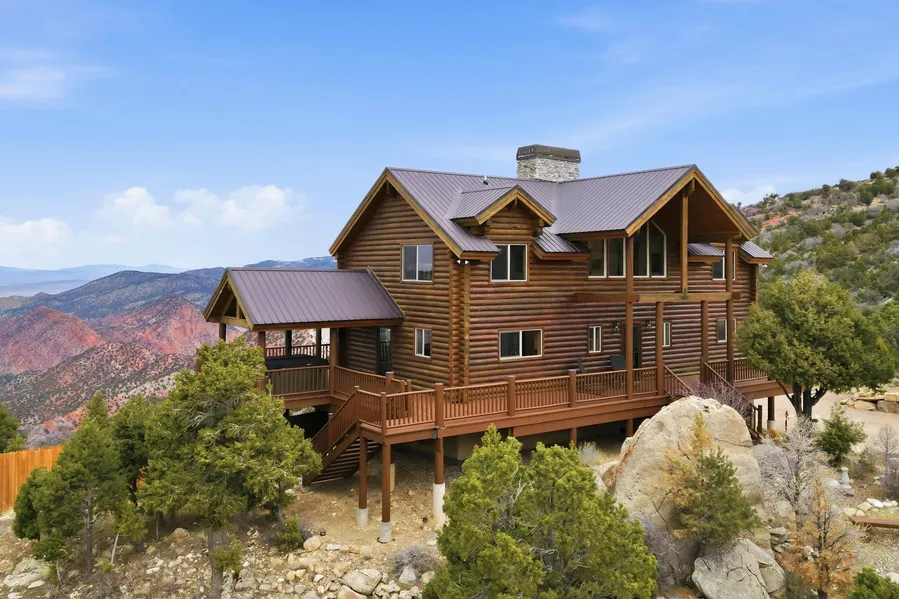 Experience the pinnacle of mountain living in this breathtakingly renovated log cabin, perched in the serene community of Cedar Highlands. This home has been meticulously updated to blend rustic charm with modern luxury, featuring a complete log restoration and professional exterior staining finished in late 2023. Inside, the home boasts unique light fixtures, and stunning walnut floors that add a layer of warmth and character to every room. The heart of the home includes a remodeled kitchen boasting brand-new appliances and elegant stone countertops. All bathrooms have been completely transformed with high-end finishes, and new custom interior handrails lead you through the thoughtful layout. This property is offered as a turnkey retreat, including all furniture, bedding, linens, and kitchen essentials, allowing you to move in and immediately begin enjoying the quiet elevation.