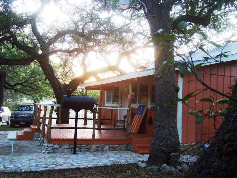 Incredible opportunity with this one bedroom one bath with a loft that can function as a second bedroom. This home sits on a canopy of oaks with shade for most of the day and on just under 1 acre in the Frio Cielo Ranch. Its just a couple minutes walk to the best swimming hole in the area. This subdivision has private river access for homeowners pavilion RV sites for your guest to rent electric, water hook ups, bath house and showers community park with beautiful tree shaded picnic tables half/basketball court, horseshoe pits. JUST REDUCED!!!!