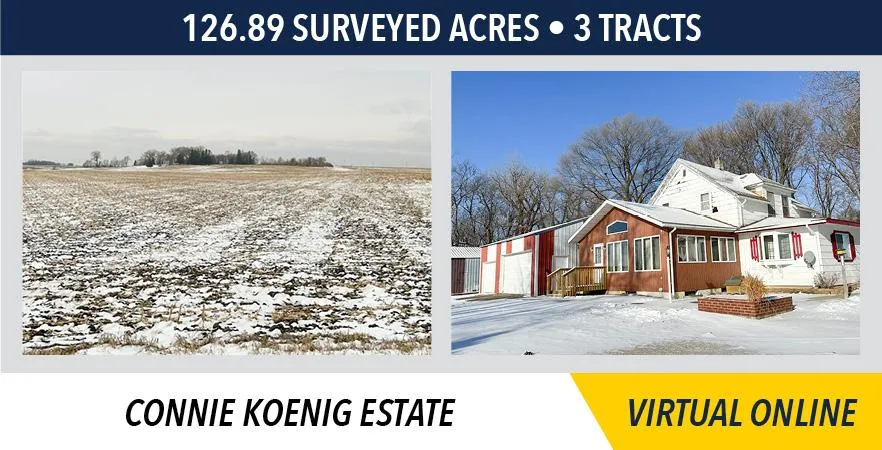 The Koenig farms are located approx. 3 miles east of Hector, MN a short distance north of Highway 212 and are further described as being located in Sections 23 & 25, T115N - R32W, Hector Township, Renville County, MN. Tracts 1 & 2 represent productive, tillable farmland with Productivity Index ratings of over 90! Tract 3 represents a country home with a machine shed on an acreage.