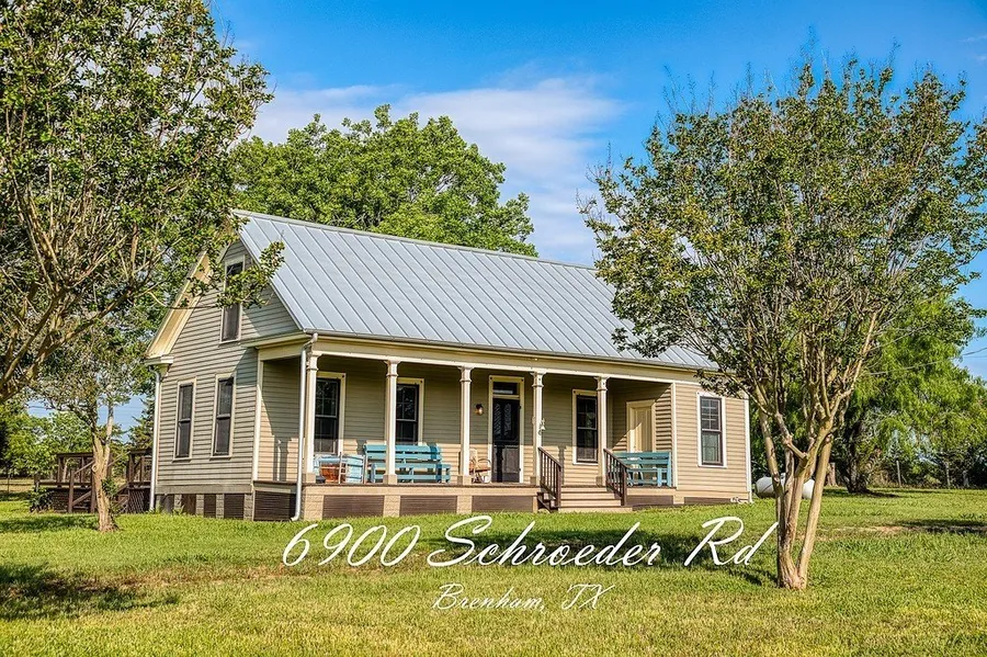 6900 Schroeder Rd offers 7 acres of country living just minutes from town. This homestead-ready property features a charming 1896 farmhouse that seamlessly blends vintage character with modern comforts. With 3 bedrooms, 2 baths, and a bonus room, the home retains its original hardwood floors and shiplap walls, while the kitchen boasts stainless steel appliances and a farmhouse sink. The large front porch is perfect for watching sunsets. Outside, you'll find multiple outbuildings including a tractor barn with a chicken coop, a workshop with a patio, and a fenced garden area. The barn features a huge air conditioned office up above. The property is cross-fenced for goats, and there are award-winning pecan trees that add to the charm. Whether you?re looking for a weekend retreat or a full-time move to the country, 6900 Schroeder Rd is the perfect place to call home.