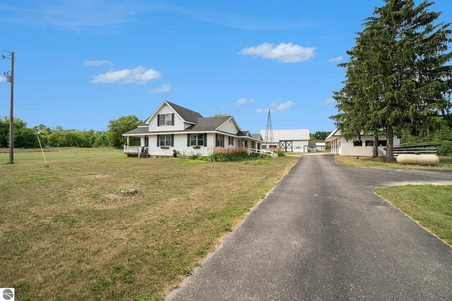 Create, or expand your own Leelanau Legacy, right here upon this quintessential Leelanau Farmstead totaling 217-acres. Farm House is absolutely charming and has been tastefully updated (see updates list). This Farm is in productive orchards, think out-of-the-box for agri-tourism, possible cider, winery, ranch/equestrian, wedding venue and more! Fantastic hunting property, too! Located in one of the quietest, most beautiful areas of the county. This property is Iconic and includes multiple outbuildings, cooling pad, warehouse, worker's quarters and homestead. Areas of the property have sweeping views of Lake Michigan, Manitou Islands, and Pyramid Point! Currently a working farm (cherries, apples and more). The property also has a perpetual Leelanau Conservation easement (no splits), but will remain as beautiful agricultural lands in Leelanau County for years to come. Don't miss out on own...