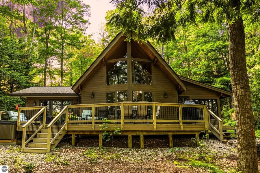 Looking for a sense of peace, privacy, and true connection to nature? Tucked into 8 acres of mature hardwoods with private frontage on tranquil Pikes Lake, this authentic Lindal Cedar home is designed to be part of the landscape - offering a lifestyle that’s both elevated and effortlessly relaxed. Crafted with classic post-and-beam construction and wrapped in Western Red Cedar, the home exudes timeless charm. Inside, you’ll find beautifully remodeled spaces (including the kitchen and baths) with thoughtful upgrades completed since 2020. A brand-new basement remodel adds even more functional living space, perfect for guests, recreation, or a cozy retreat. Vermont Castings wood stove, a high-efficiency heat pump system (2019), and warm pine and cedar finishes throughout add both comfort and character. The outdoor spaces are just as compelling. Expansive decking offers front-row views of the lake and woods, while a 2023 Cal Spa hot tub and a newly added white cedar sauna (2022) invite you to unwind in total serenity. Whether you’re sipping morning coffee on the screened-in porch, watching wildlife from the InstaDock, or exploring your own private woodland trail, every corner of this property encourages stillness and retreat. Additional features include a finished 2.5-stall insulated garage, a covered porch, a pole barn, and two handcrafted Amish-built structures: a wood shed and a chicken coop - adding both utility and rustic charm. A scenic half-mile drive winds through an enchanted forest, leading to the home’s secluded setting. This is more than a getaway - it’s a place to ground yourself, recharge, and truly feel at home.