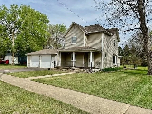 This 2 story home features a formal dining room, spacious living room with a built in book case. Large kitchen and half bath on the main floor. Second floor features 2 large bedroom with walk in closets and a full bath including washer and dryer. Attached double car garage all located on a large lot (2 city lots). Small town living at its finest, 1\2 block from the school and 2 blocks from the park and swimming pool...