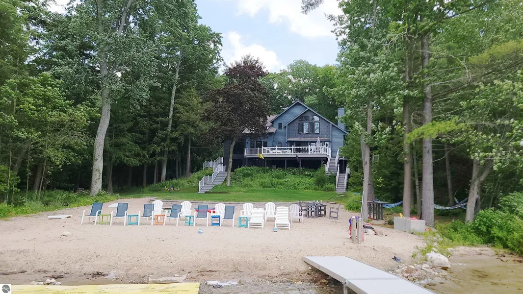 Welcome to your private estate on the shores of Long Lake! Nearly 200ft of Private, sandy beach front. Parcels this size, with this much privacy and lake frontage are very rare. This exquisite lakefront property offers the perfect blend of luxury, comfort, and outdoor adventure, making it ideal for those seeking a vibrant lifestyle. Nestled just 10 minutes from downtown Traverse City, this stunning residence boasts breathtaking views, exceptional amenities, and unparalleled access to year-round recreational activities!! Property Features: 5 Bedrooms, 3.5 Bathrooms: Spacious and elegantly designed, the perfect retreat for family and friends. Lake Frontage: Nearly 200 feet of Private, all sandy beach front!! The feel of an exclusive resort! Lake front has the perfect mix of shallow sandy bottom for the little ones, yet a deep enough drop off just 60 feet out to allow for storing surf boats etc. Gourmet Kitchen: Featuring Stainless appliances, custom countertops, and a large island, perfect for entertaining. Open-Concept Living Area: Bright and airy with floor-to-ceiling windows offering panoramic lake views. Master Suite: A private oasis with a spa-like bathroom, walk-in closet, with stunning lake views Finished Basement: Ideal for a game room, home theater, or fitness area. Dedicated hot tub room! Open the doors to the lake, and enjoy a soak year round! Expansive Deck: Perfect for outdoor dining, sunbathing, or simply enjoying the serene lake views. 2-Car Garage: Ample space for vehicles and storage. Even includes a sperate basketball / sport court.
