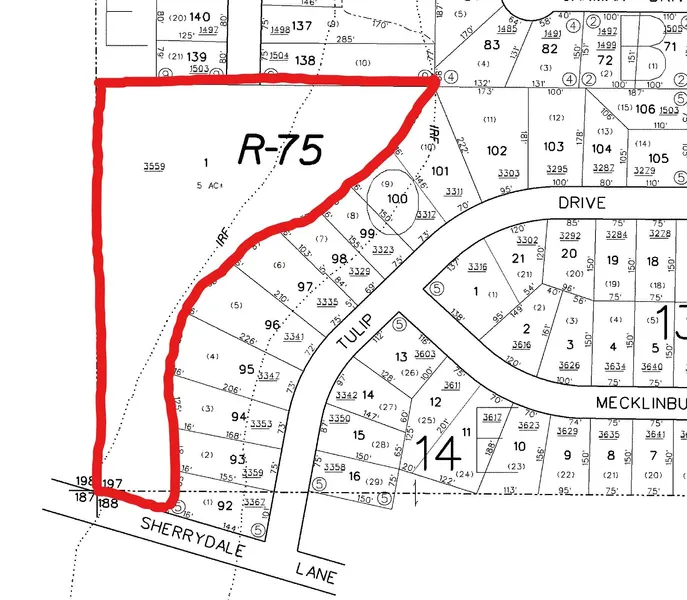 5 wooded acres Zoned R75 in Decatur! Situated off of Sherrydale Rd between Peachcrest Elementary School and Towers High School. Convenient to 285. Partial flood zone on property, still plenty of room for housing development.