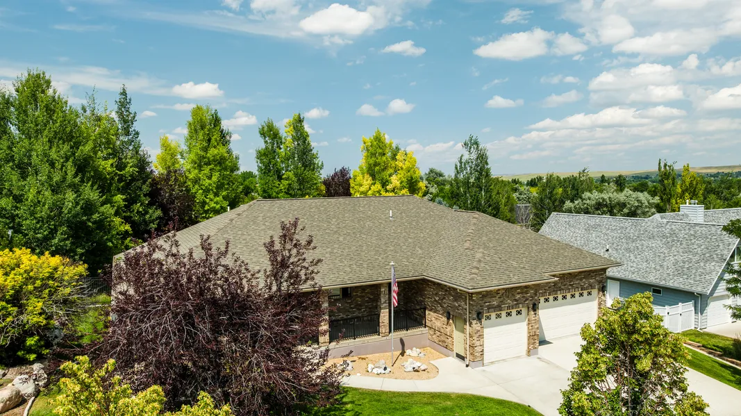 Beautifully crafted custom brick home in one of Sheridan's most desirable neighborhoods—Mountain Shadows. Offering 3,700 sq. ft. of refined living space and a spacious 1,500 sq. ft. three-car garage, this home combines comfort, functionality, and elegance. Enjoy sweeping views of the Bighorn Mountains across a serene open park area to the south. The open-concept main living area is perfect for entertaining, featuring custom built-ins, a chef's kitchen, and seamless access to the very large backyard. The lower level includes two generously sized bedrooms connected by a Jack and Jill bathroom, a large family room with a cozy fireplace, and a built-in television and sound system—all included.